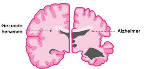 Bij alzheimer hopen eiwitten zich op in de hersenen. Daardoor geven hersencellen steeds minder boodschappen aan elkaar door. Uiteindelijk sterven ze af. Je krijgt daardoor problemen met je geheugen en reageert traag. Soms zie of hoor je dingen die er niet zijn. Ook wordt het moeilijker om te plannen en overzicht te houden. Verder kan bewegen steeds lastiger worden. De ziekte van Alzheimer kan samen met een andere vorm van dementie voorkomen zoals bijvoorbeeld vasculaire dementie.