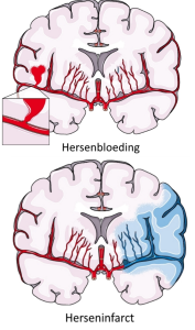 Bij vasculaire dementie raken bloedvaten in de hersenen beschadigd. Bijvoorbeeld door een herseninfarct, een beroerte of suikerziekte. Bij frontotemporale dementie zijn het de voorste delen van de hersenen die beschadigd raken.